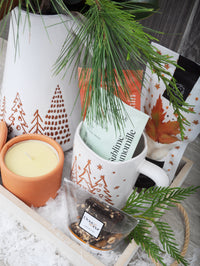 Toujours de l'entreprise Danica, mais cette fois-ci en option, faites le choix de compléter le panier cadeau à merveille avec une tasse agencée au pichet, pour vos breuvages chauds ou froids.