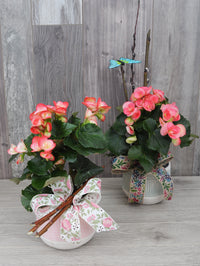 *Bégonia ou kalenchoe, au choix de la fleuriste selon les disponibilités. La couleur de la plante varie selon les arrivages en boutique. La couleur du ruban sera agencée avec le cache-pot.