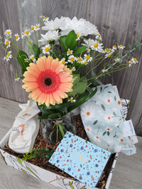 Le cadeau idéal pour offrir un ensemble bouquet de fleurs et produits douceur pour une nouvelle maman et son bébé à venir!