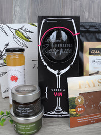 Voici l’ensemble cadeau Bonne et heureuse retraite qui met en valeur des produits pour savourer les petits bonheurs de la vie de retraité.e!