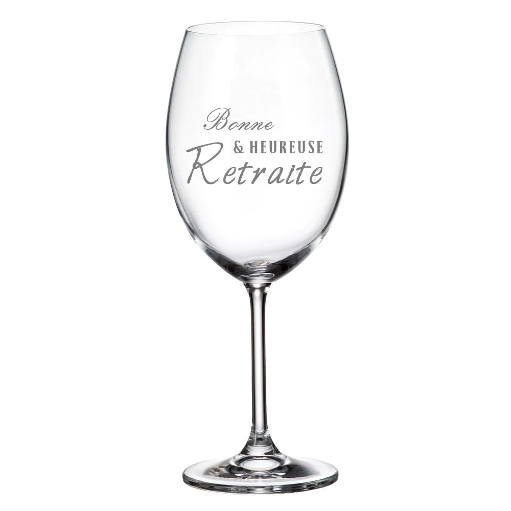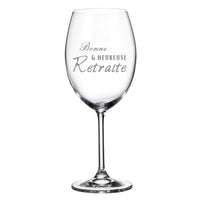 - Un verre à vin avec écriture « Bonne et heureuse retraite » de La Maison du Bar pour déguster vin, cocktails ou mocktails.