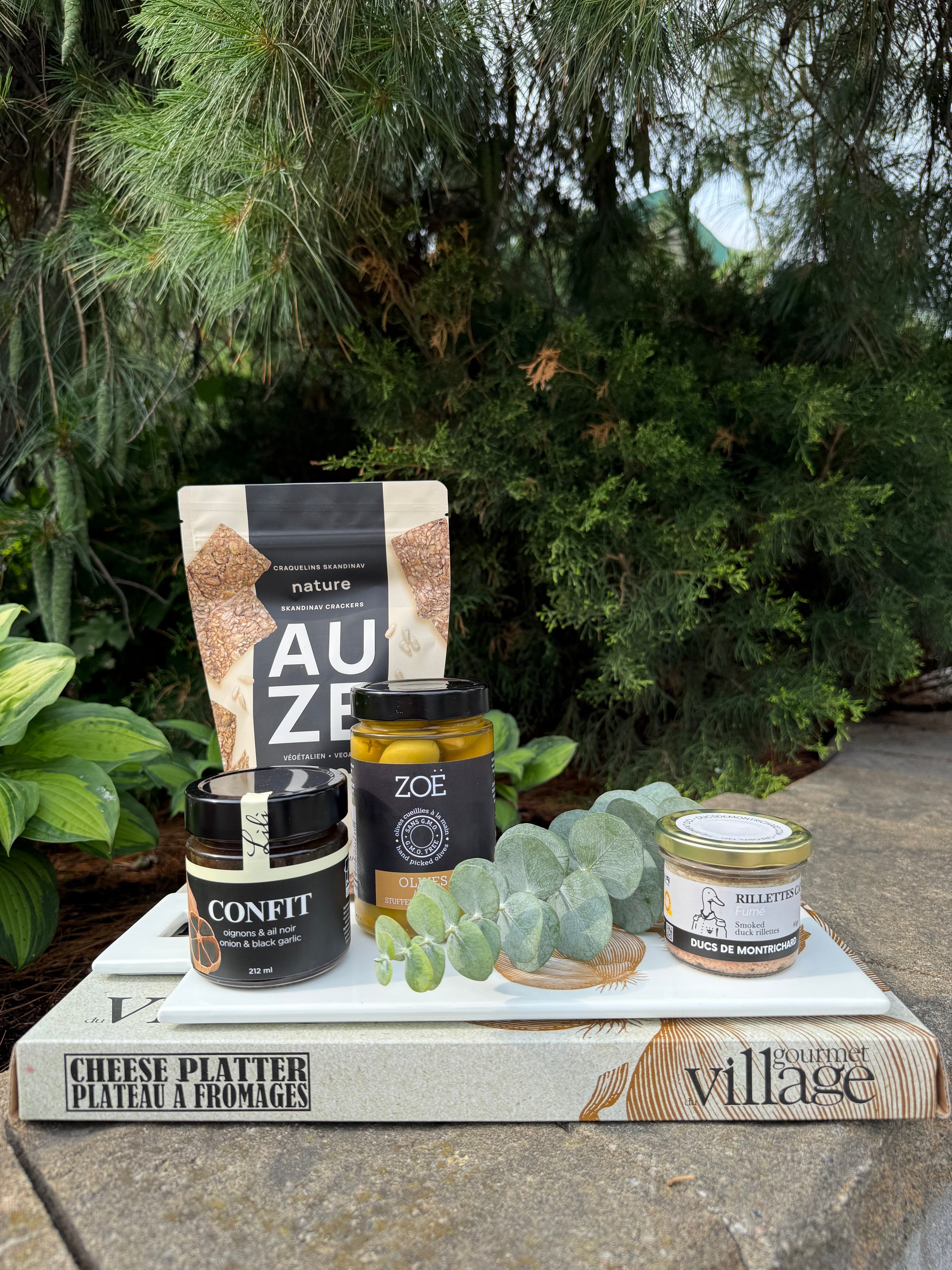 - And for the perfect presentation of your aperos, a cheese board from Gourmet du Village. It is perfect for a variety of cheeses, of course, but it can also be used to present charcuterie or tapas. An ultra-practical, trendy accessory.
