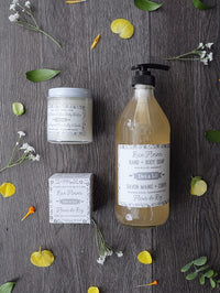 - Liquid soap for body and hand in clear glass bottle of 473 ml / 16 fl oz. Moisturizing formula based on olive oil and coconut oil, with a rich and abundant foam that leaves the skin soft. For use in the hand basin, or in the bath or shower to gently cleanse the entire body skin.