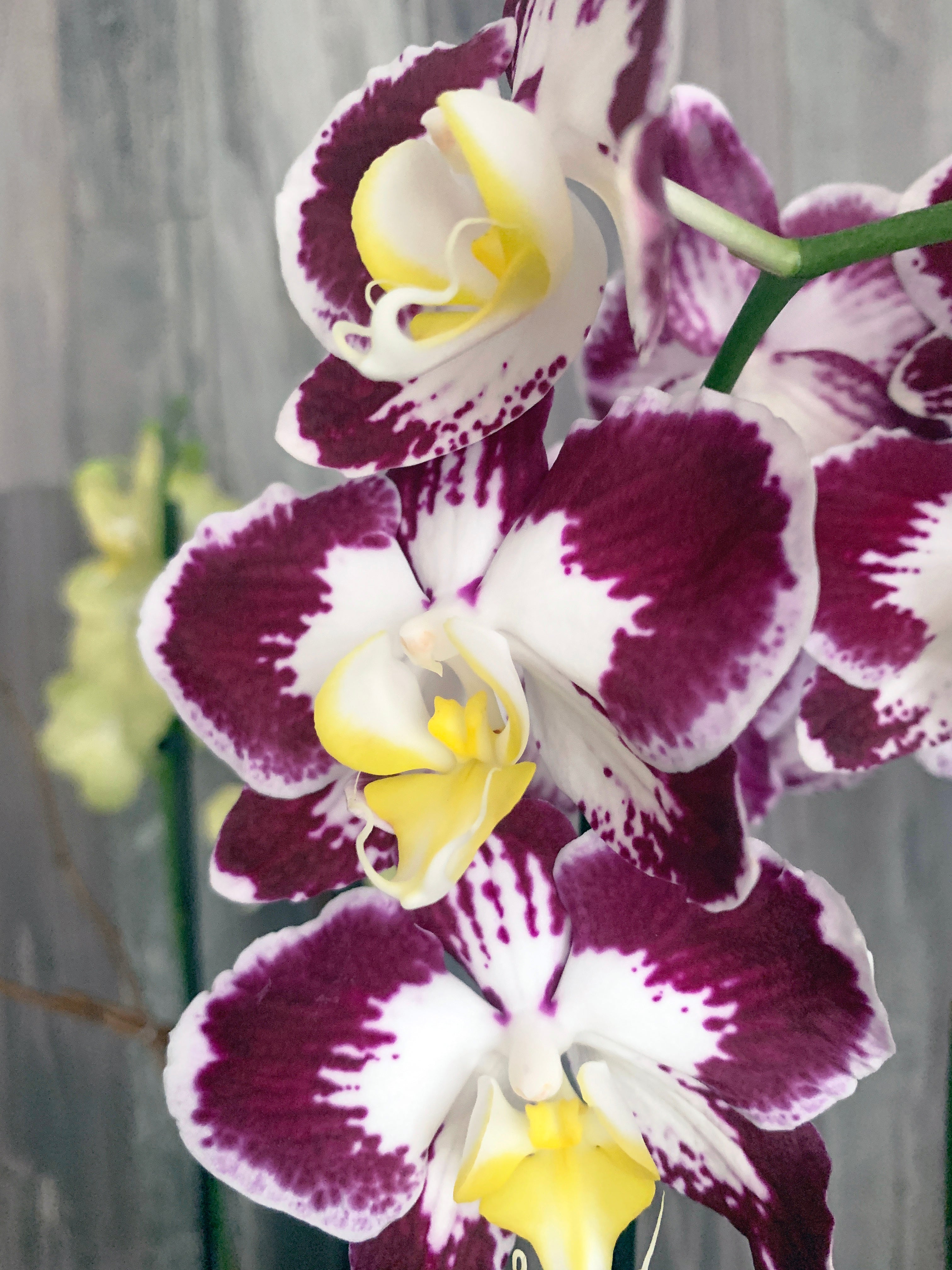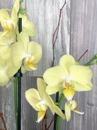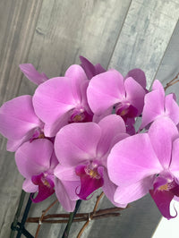 Presented in a pretty pastel-colored plantpot* and with metallic decoration, this springtime orchid plant is undeniably a favorite for many!