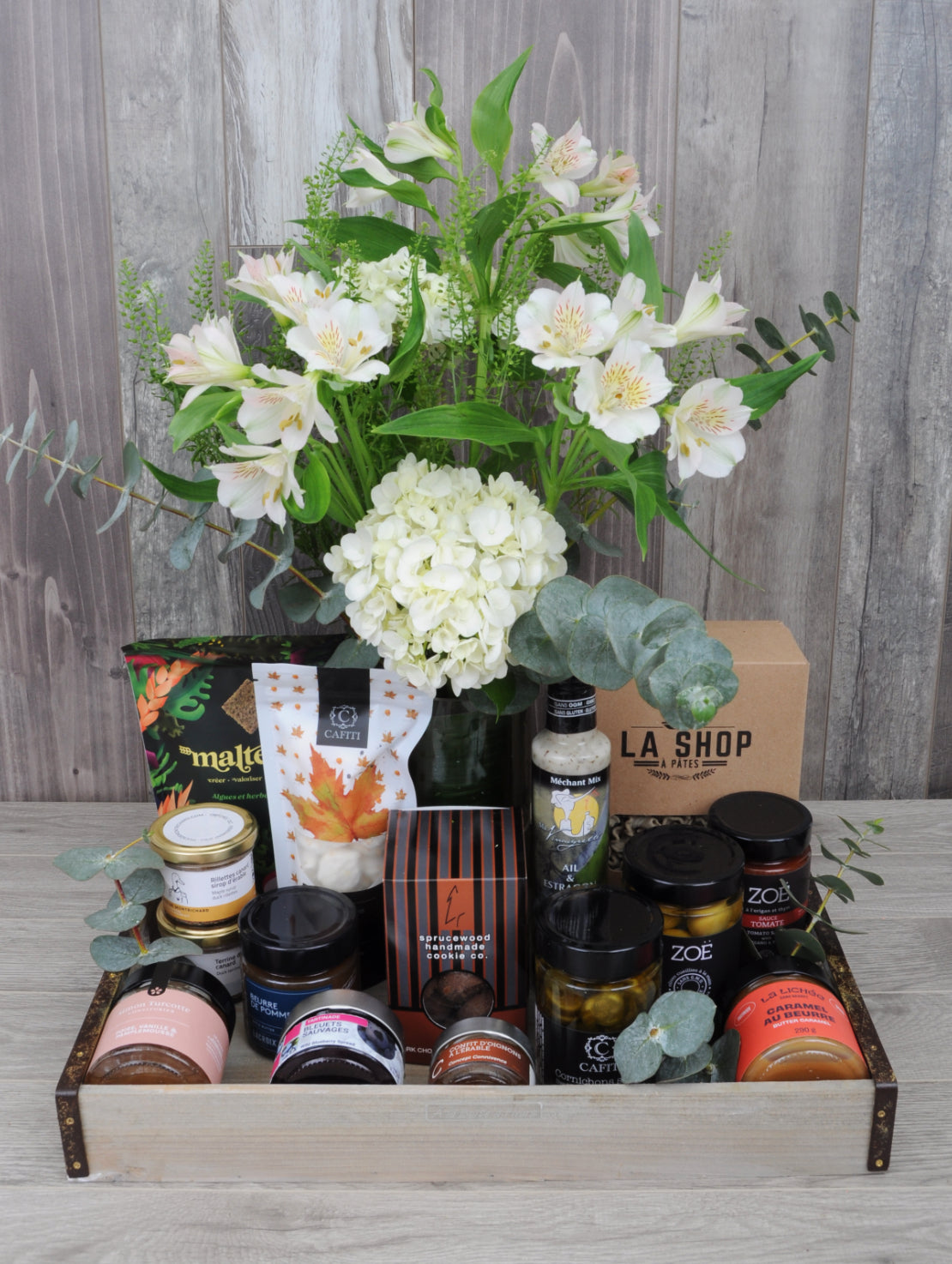 On est sous le charme (et nos papilles aussi!) de cet impressionnant panier cadeau rempli de produits gourmets créés par des entreprises locales!